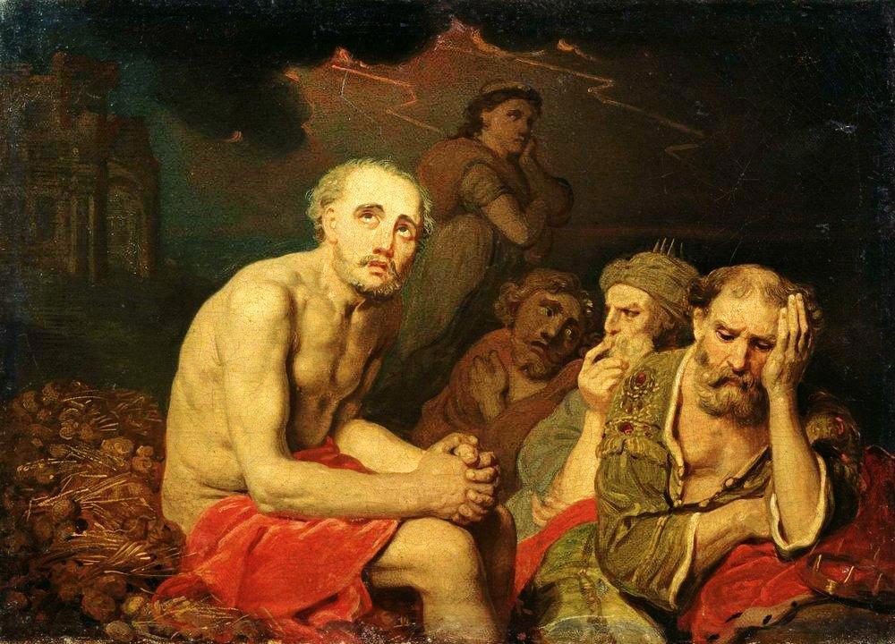 Image is Job and His Friends by Vladimir Borovikovsky (1810s)