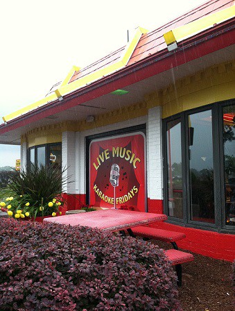 I interpret this new programming as an act of desperation. Yes, it could be that a creative McDonald’s staffer recently noticed that there was no place for the kids to hang out on Friday nights and suggested something cheesy/fun to give them a Third Place. Karaoke and Live Music on Fridays! Who would not want to hang out here on a Friday night? At McDonald’s. In the suburbs.