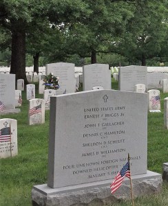 Memorial Day is when we remember those who have died in service to their country. I was struck by the grave marker of Army SFC Ernest F. Briggs Jr (Devine, Texas), SFC John T. Gallagher (Hamden, Connecticut), CW3 Dennis C. Hamilton (Barnes City, Iowa), CW3 Sheldon D. Schultz (Altoona, Pennsylvania), SFC James D. Williamson (Tumwater, Washington) who died in when their helicopter was shot down over Laos. It took 29 years to retrieve their remains. You can read more about their sacrifice here.