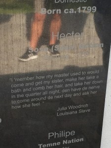 You may have heard about the NMAAHC which is about to celebrate it’s first anniversary.  But the Whitney Plantation (no relation to the New York Whitneys) is the only plantation in the United States devoted wholly to the life of the enslaved people who lived and died there.  My little tour group included a couple from London, a couple from Denmark, and a couple from India.  It’s curious that international travelers would venture to this out-of-the-way spot in rural Louisiana while only a single American made the trip.  I’m assuming this was an anomaly for our particular tour group.