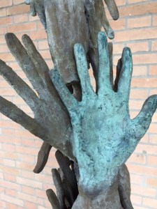 Images of Elogio Delle Mani by Paolo Delle Monache (2006) outside the chapel of the Bose Monastery in Magnano, Italy
