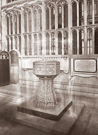 Image of the baptismal font is St. George’s Chapel in Windsor Castle made of Coade stone (circa 1790)