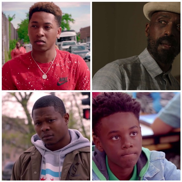 Image of (from top right) the actors Ntare Guma Mbaho Mwine, Alex Hibbert, Jason Mitchell, and Jacob Latimore who respectively play the roles of Ronnie, Kevin, Brandon, and Emmett on The Chi.