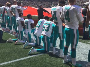I can’t write about what kneeling at NFL games means – to the kneelers – better than Elizabeth Bruenig here. When I read that politicians believe that players who kneel during the National Anthem are unpatriotic, I feel angry. No kneeling football player has ever said that their decision to kneel was intended to disrespect the flag or the national anthem. But kneeling has been outlawed by a unanimous vote yesterday of the NFL team owners.