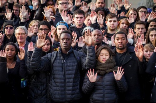 Image from a Hands Up, Don’t Shoot event on a college campus in 2014.