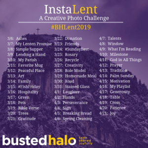 - Lenten Photo Challenge. As you go through each day in Lent, take a photo of something you notice involving the suggested word of the day. Here are a couple lists I like: