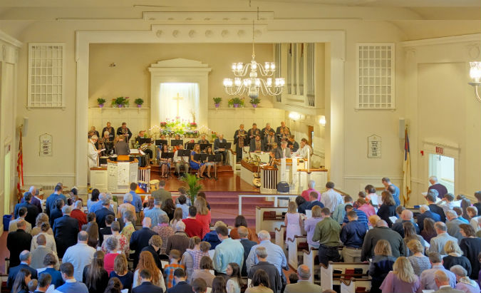 Image of an anonymous Protestant church in the Midwest U.S. on Easter Sunday.