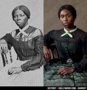 Top image of Harriet Tubman and Cynthia Erivo who plays her in Harriet. The bottom image of the saint’s gravestone in Auburn, New York.