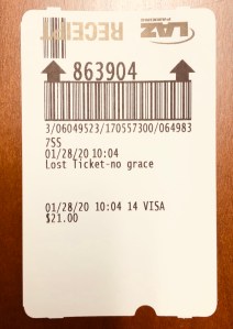 This means I forked out $21 for a parking spot that should have cost me $6 and as I pushed the “lost the ticket” button on my way out of the garage, the machine spat out this special receipt: