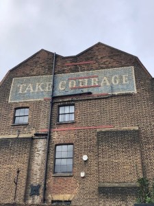 I like the idea of Taking Courage. We saw that sign painted on a building in London and maybe “taking” versus “having” is a semantic difference. Brits say “take” and we say “have.”