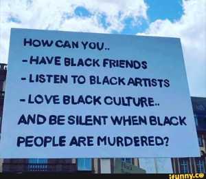 Popular image from a recent BLM protest. And a note about having Black friends. (Most White people don’t actually have any. Read here.)