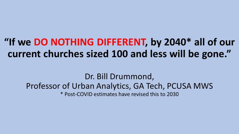 “How to pay for such things” you ask? If God is calling you to do ministry in new, dramatic ways the funds will come. It’s also possible that you’ve waited so long to do the dramatic, that God will call someone else to do it for you.