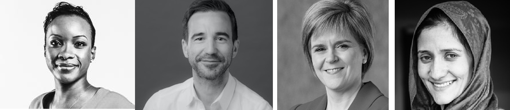 Image of TED Talkers (left to right) Patrice Gordon, Tomas Chamorro-Premuzic, Nicola Sturgeon, and Shabana Basij-Rasikh.