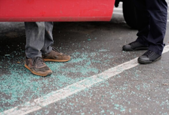 Image of the scene where U.S. citizen Willy Aceituno was held by ICE after an officer broke his truck window.