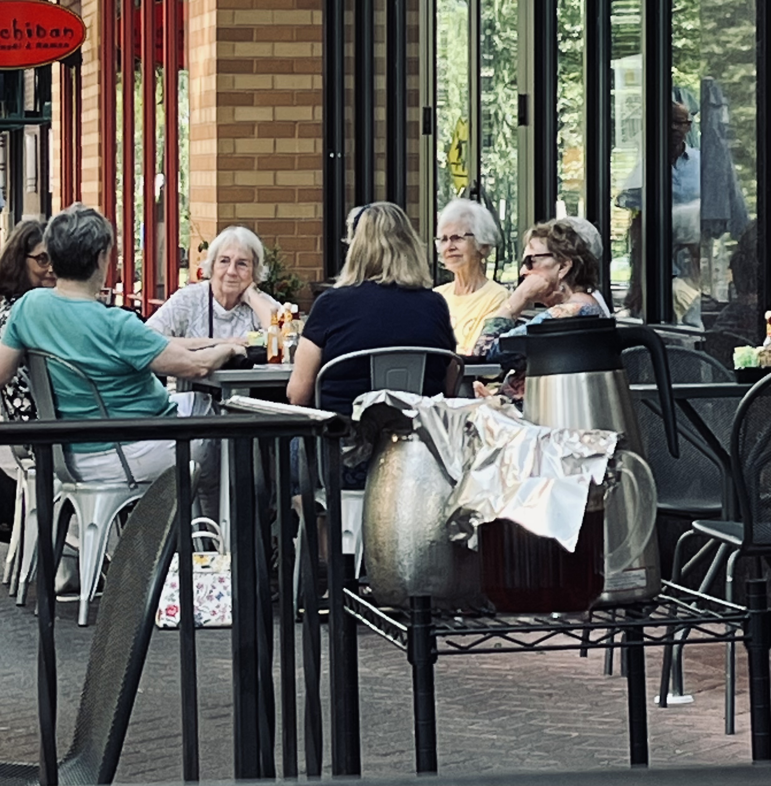 Image of a group of women I observed last summer in what will be our new neighborhood in late May. I want to be the one with gray hair and her face resting on her hand.