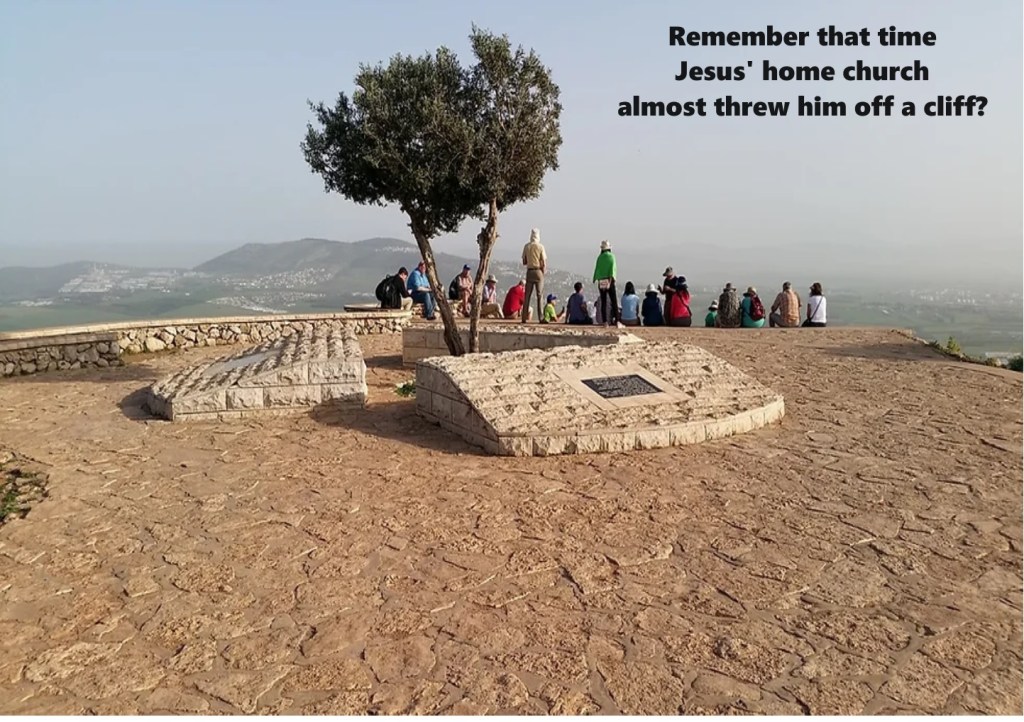 Image of Mount Precipice in Israel. I was privileged to be there in July 2023 with some of the best preachers I know.You can read why Jesus’ home church wanted to throw him off a cliff after his first sermon here.